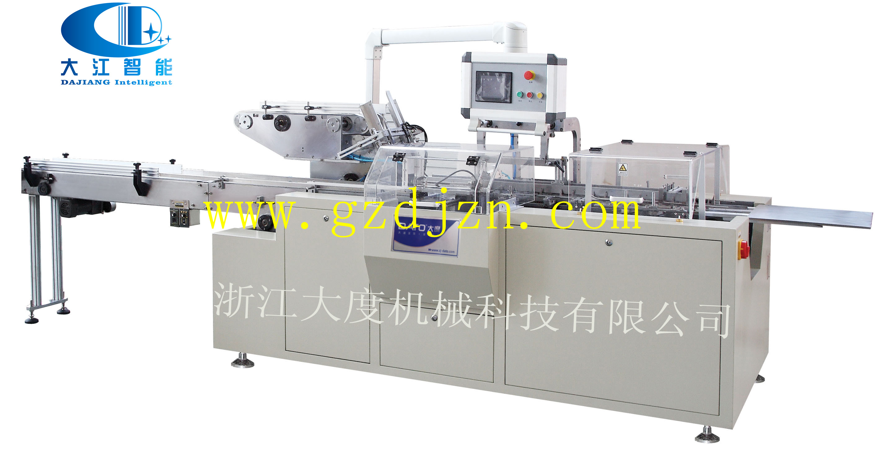 1. Packing forms such as automatic feeding, box opening, boxing, batch No. printing, glue spreading, box sealing, etc. are adopted. Featured by compact and reasonable structure, simple operation and adjustment.